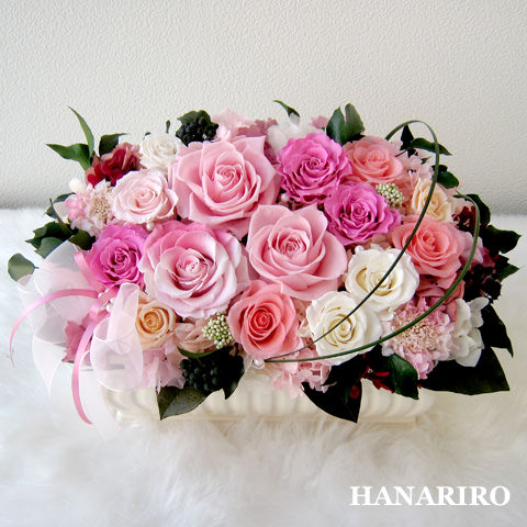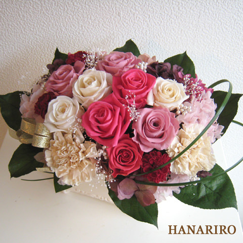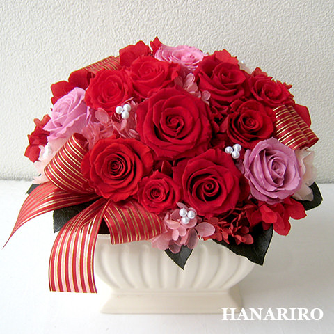 | お勧め | プリザーブドフラワーは生花に比べて長い間、お花を楽しんで頂けます。お水等のお手入れの必要がありません。 |
