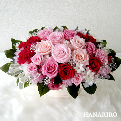 | お勧め | プリザーブドフラワーは生花に比べて長い間、お花を楽しんで頂けます。お水等のお手入れの必要がありません。 |